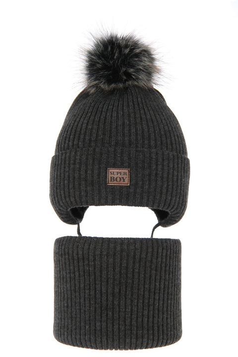 Boy's winter set: hat and tube scarf grey Denzel with pompom