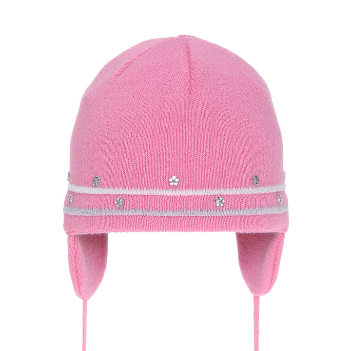 Girl's spring/ autumn hat, pink, merino wool with cashmere, with ears, Orida