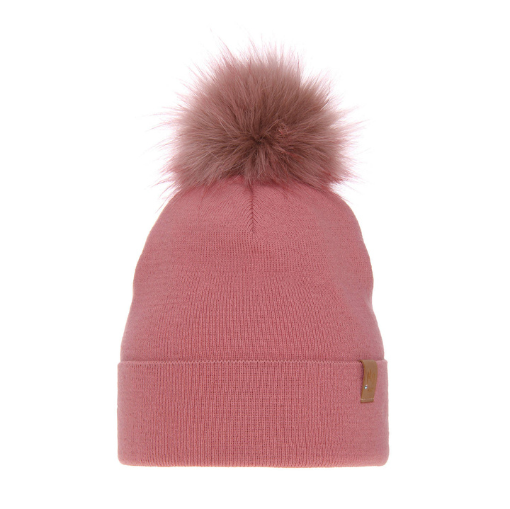 Girl's winter set: hat and tube scarf camel Kornela with pompom