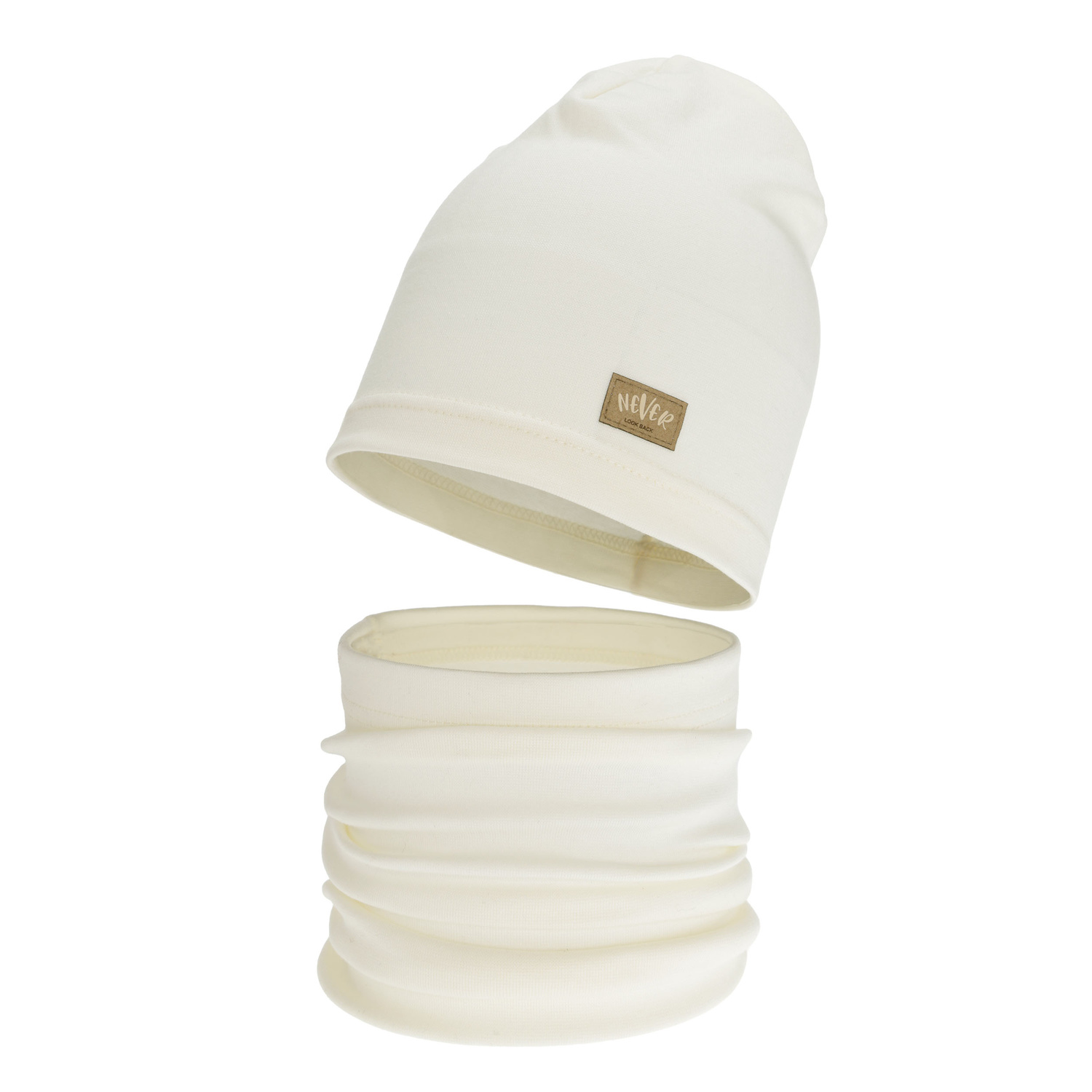 Girl's spring, autumn set: hat and tube scarf, cream, cotton, Torila