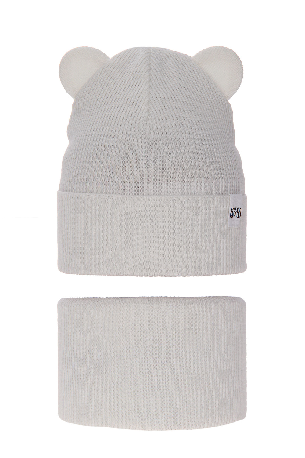 Girl's spring/ autumn set: hat and tube scarf, with cotton, ecru Kajra
